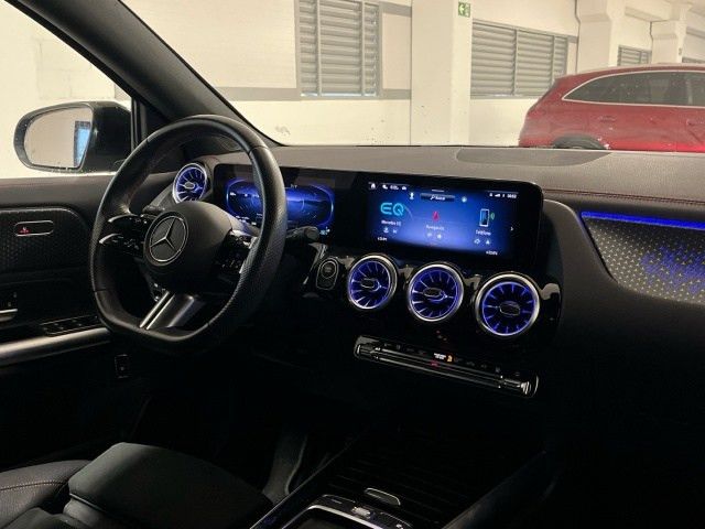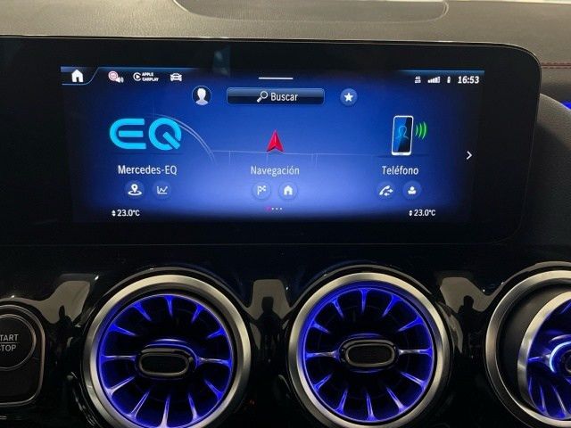 Equipamiento de serieMiembro inconfundible de la familia totalmente eléctrica de Mercedes-Benz: en el exterior, el EQA se caracteriza por la calandra del radiador Black Panel, la franja luminosa delante y detrás y los elementos azules de los faros LED. En el interior, el sistema multimedia inteligente MBUX indica el camino hasta la estación de carga más cercana.