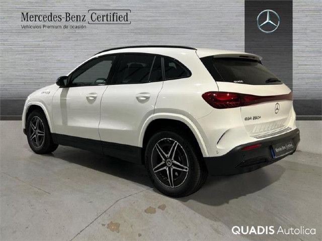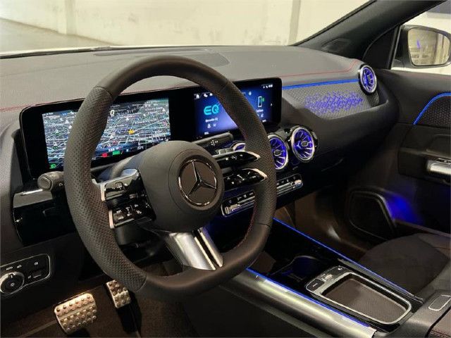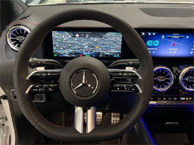 Equipamiento de serieMiembro inconfundible de la familia totalmente eléctrica de Mercedes-Benz: en el exterior, el EQA se caracteriza por la calandra del radiador Black Panel, la franja luminosa delante y detrás y los elementos azules de los faros LED. En el interior, el sistema multimedia inteligente MBUX indica el camino hasta la estación de carga más cercana.